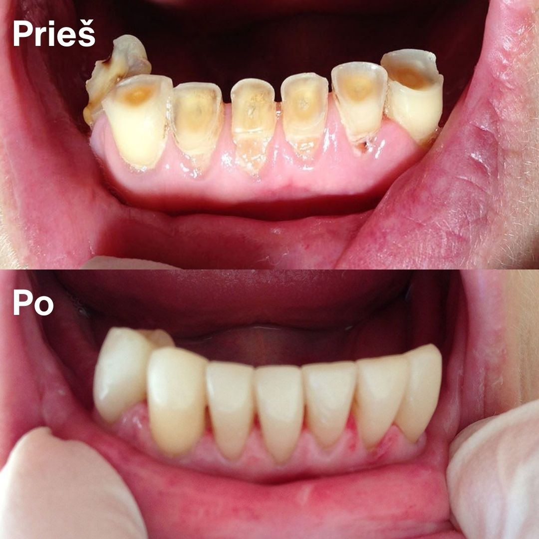 Atliekama implantacija + laikini dantys tą pačią dieną (jei tinkama situacija).